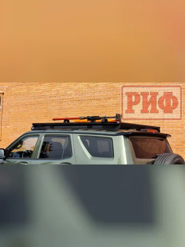 Алюминиевая багажная платформа РИФ является базовым элементом современной мультифункциональной системы крепления груза и дополнительного оборудования на крыше внедорожника. Ее отличительными особенностями являются очень высокая прочность конструкции, простое и надежное закрепление как груза, так и разнообразных монтажных кронштейнов, отсутствие аэродинамических шумов при движении с высокими скоростями, высокая стойкость к коррозии и небольшой, для такой прочности, вес.