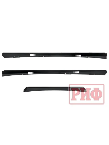 Алюминиевый багажник РИФ – это не просто платформа, на которую можно что-то положить, и притянуть подручными средствами к поперечинам, а полноценная система для крепления не только различных по форме и весу грузов, но и многочисленного дополнительного оборудования и инвентаря. В поперечинах, на всю их длину, есть пазы в которые заводятся крепежные болты кронштейнов или кольца для стяжных крепежных ремней. Таким образом точку крепления можно организовать в любом месте платформы. Толщина стенки паза, в который входит болт крепления, - 3 мм, что позволяет ему держать нагрузку на разрыв до 200 кг! Пазы закрыты специальными упругими пластиковыми защитными лентами, имеющими объемную полусферическую форму. Благодаря этому, груз, размещаемый на платформе, не контактирует с собственно алюминием, а лежит на этих лентах. Таким образом, не царапается порошковая краска багажника и сам груз. Также ленты препятствуют попаданию грязи, мусора и воды в пазы.