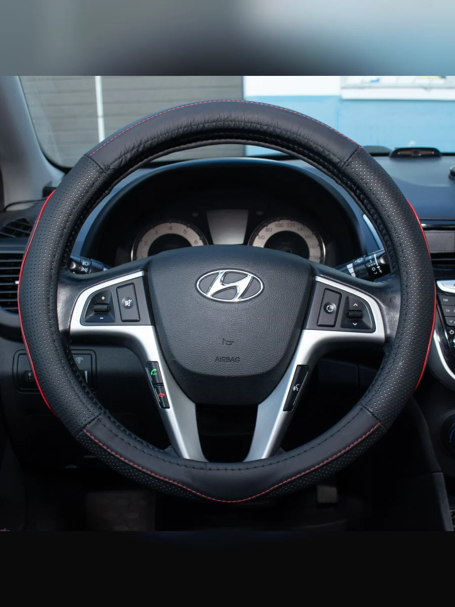 Оплетка руля (натуральная кожа, 37-39 см) Автопилот BLW039 (черный/красная строчка) в Борисоглебске Воронежской области