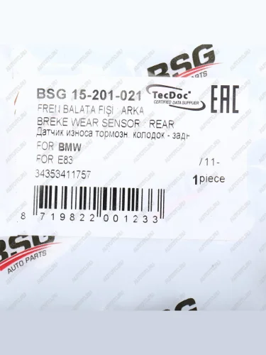 Датчик износа тормозных колодок BMW X3 (E83) задний (1шт.) BSG BSG bsg15201021 в Борисоглебске Воронежской области