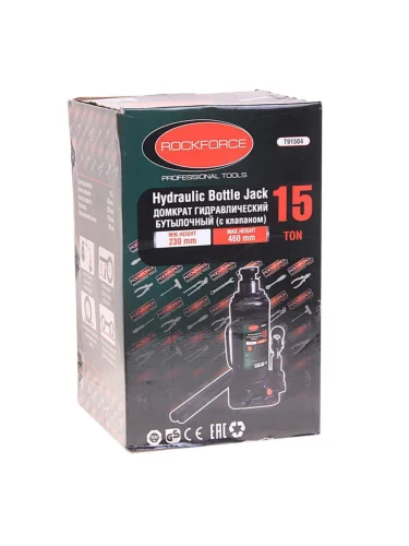 | Наименование | Домкрат бутылочный 15т 230-460мм с клапаном ROCKFORCE в Борисоглебске Воронежской области |