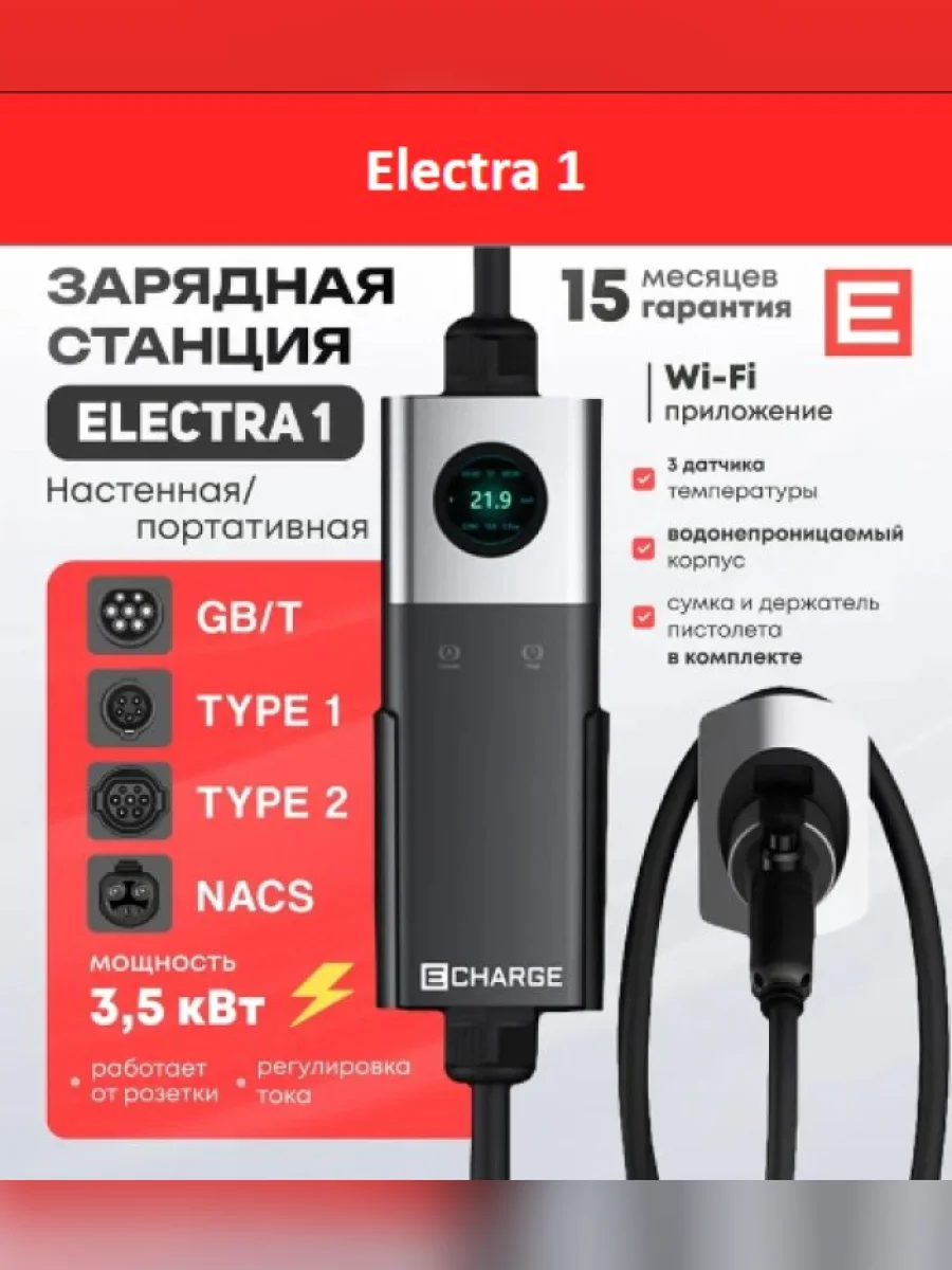 | Наименование | Зарядная станция электромобилей Electra 1 3,5 кВт (GB/T) в Борисоглебске Воронежской области |