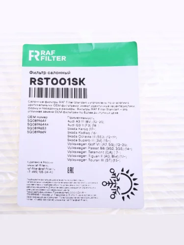 Фильтр воздушный салона VW Golf 7 AUDI A3 (13-) SKODA Octavia (13-) RAF FILTER в Борисоглебске Воронежской области
