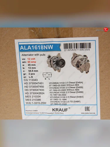 Генератор HYUNDAI Porter (12V,65А) двойной шкив KRAUF KRAUF ala1618nw в Борисоглебске Воронежской области