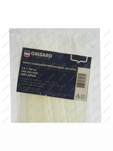 Хомут-стяжка 100х2.5 пластик белый (100шт.) GRISARD ELECTRIC GRISARD ELECTRIC gre-010-0001 в Борисоглебске Воронежской области