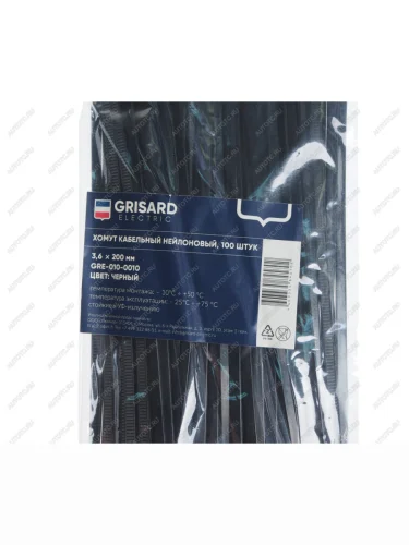 Хомут-стяжка 200х3.6 пластик черный (100шт.) GRISARD ELECTRIC GRISARD ELECTRIC gre-010-0010 в Борисоглебске Воронежской области