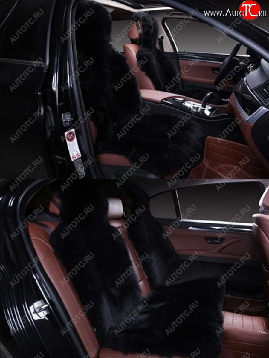 Комплект накидок на весь салон (Класс А длинный ворс натуральный мех) Автопилот (черный) в Борисоглебске Воронежской области