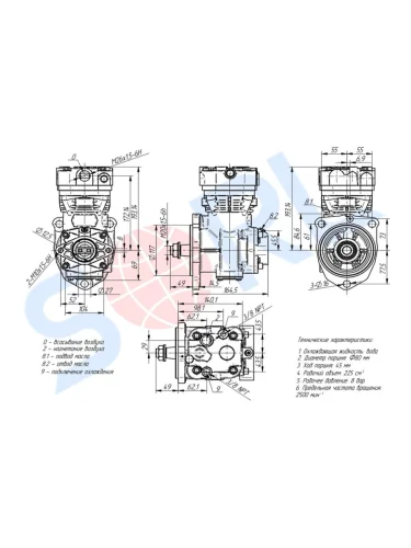 Компрессор МАЗ,ПАЗ-320412,УРАЛ-4320 дв.ЯМЗ-534,536 (1 цил.) жид.охлаж. 270л/мин. (17-) SORL SORL 35090800010 SORL 35090800010 в Борисоглебске Воронежской области