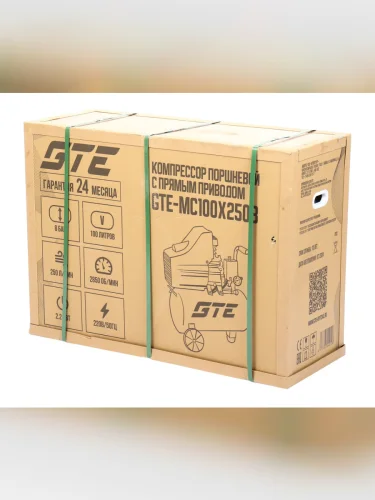 | Наименование | Компрессор пневматический 220В 2.2кВт 8атм. 250лмин. ресивер-100л поршн. с прям. прив. V-образ. GTE в Борисоглебске Воронежской области |