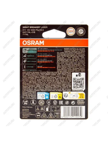 Лампа 12V H11 55W PGJ19-2 +150% 3750K блистер (1шт.) Night Breaker Laser OSRAM OSRAM 64211nl-01b в Борисоглебске Воронежской области