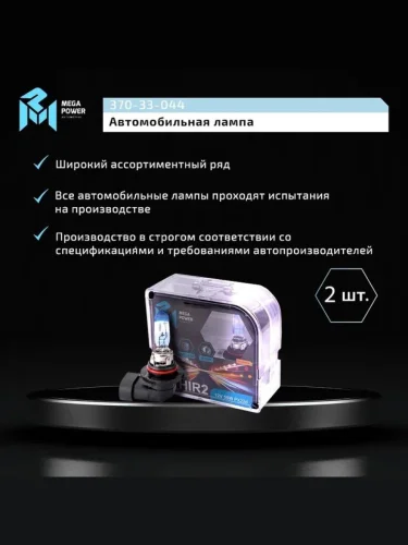 | Наименование | Лампа 12V HIR2 55W PX22d +120% бокс (2шт.) MEGAPOWER MEGAPOWER 370-33-044 в Борисоглебске Воронежской области |