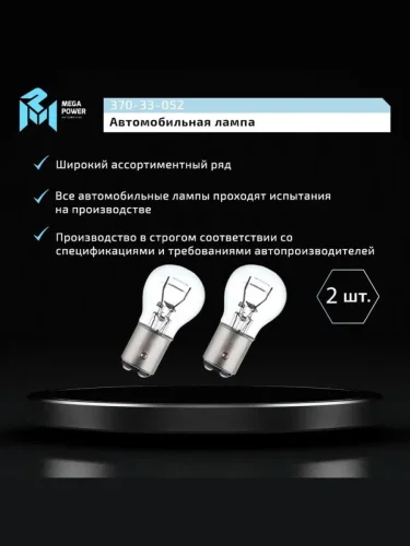 | Наименование | Лампа 24V P215W BAY15d блистер (2шт.) Standart MEGAPOWER MEGAPOWER 370-33-052 в Борисоглебске Воронежской области |
