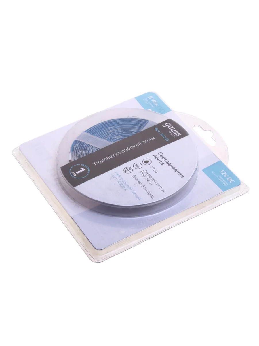 Лента светодиодная гибкая 8W 5м IP20 12V холодный белый (блистер) Basic GAUSS в Борисоглебске Воронежской области