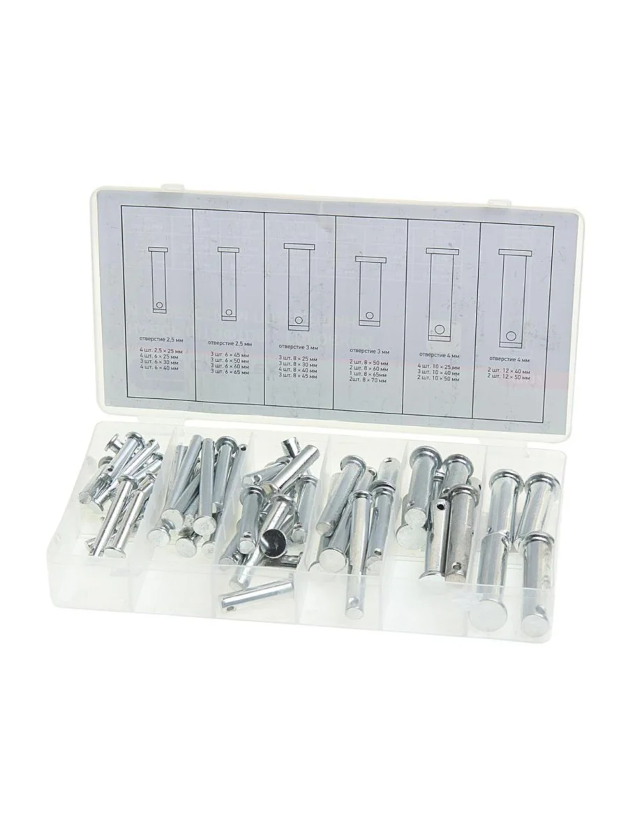 Набор штифтов с головкой и отверстием под шплинт 60шт. СИБРТЕХ СИБРТЕХ 47612 в Борисоглебске Воронежской области