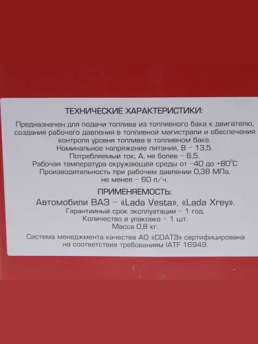 | Наименование | Насос топливный ЛАДА Vesta X-Ray электрический погружной в сборе СОАТЭ СОАТЭ 2180.1139 в Борисоглебске Воронежской области |