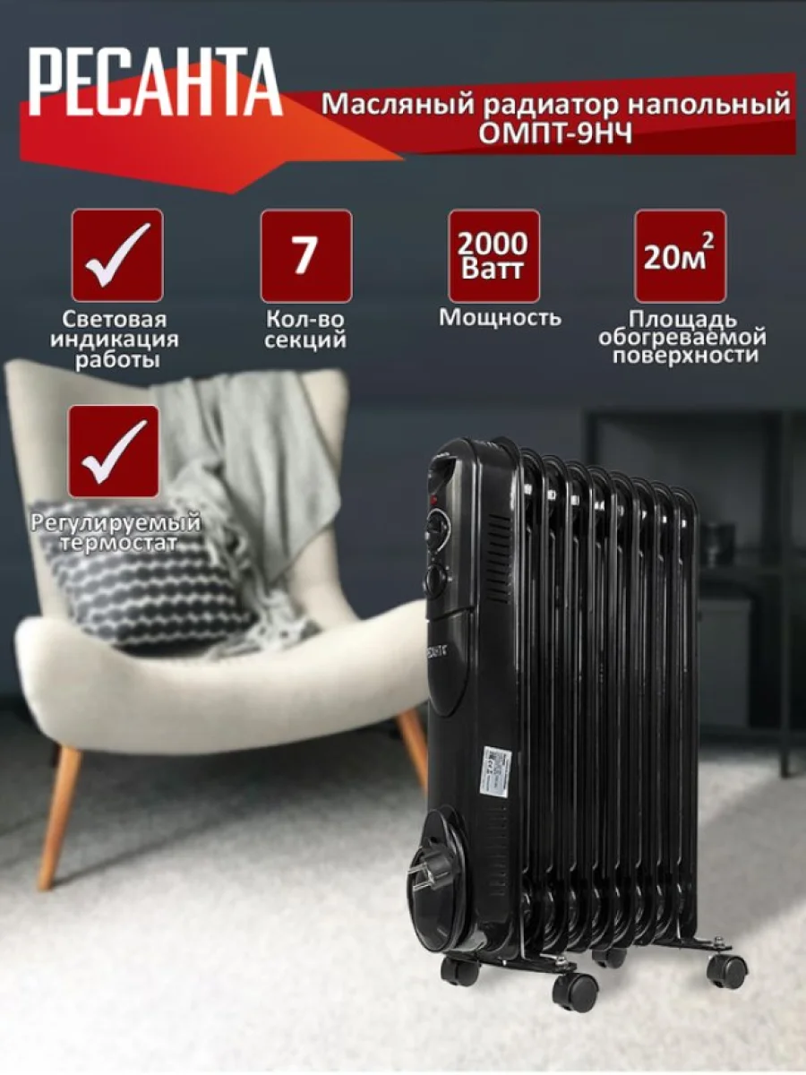 | Наименование | Обогреватель радиатор масляный 2.00кВт (20кв.м) 9 секций черный РЕСАНТА РЕСАНТА 67314 в Борисоглебске Воронежской области |
