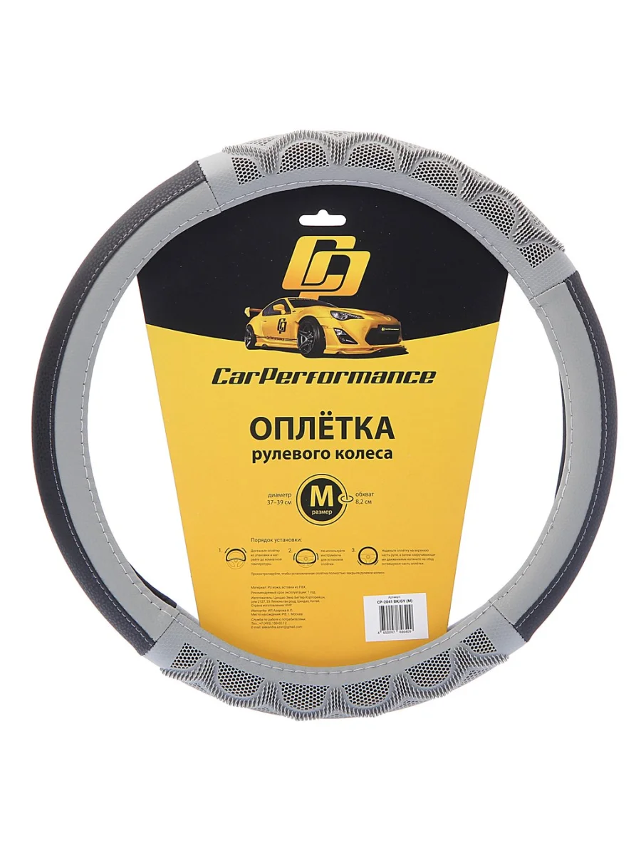 Оплетка руля (M) 37-39см черно-серая экокожа объемные вставки Car Performance AUTOPROFI AUTOPROFI cp-2041 bkgy (m) в Борисоглебске Воронежской области
