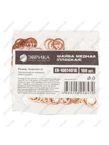 Шайба 10.0х14.0х1.0 медная (плоская) ЭВРИКА ЭВРИКА er-10014010 в Борисоглебске Воронежской области