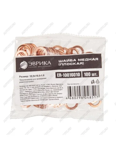 Шайба 10.0х16.0х1.0 медная (плоская) ЭВРИКА ЭВРИКА er-10016010 в Борисоглебске Воронежской области