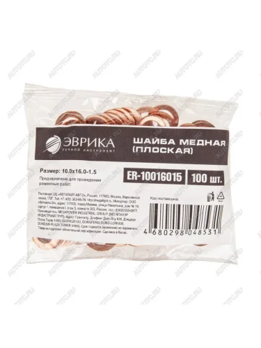 Шайба 10.0х16.0х1.5 медная (плоская) ЭВРИКА ЭВРИКА er-10016015 в Борисоглебске Воронежской области