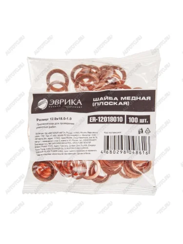 Шайба 12.0х18.0х1.0 медная (плоская) ЭВРИКА ЭВРИКА er-12018010 в Борисоглебске Воронежской области
