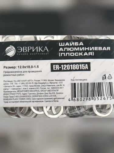 Шайба 12.0х18.0х1.5 алюминиевая (плоская) ЭВРИКА ЭВРИКА er-12018015a в Борисоглебске Воронежской области