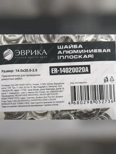 Шайба 14.0х20.0х2.0 алюминиевая (плоская) ЭВРИКА ЭВРИКА er-14020020a в Борисоглебске Воронежской области