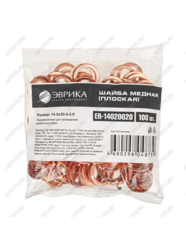 | Наименование | Шайба 14.0х20.0х2.0 медная (плоская) ЭВРИКА ЭВРИКА er-14020020 в Борисоглебске Воронежской области |