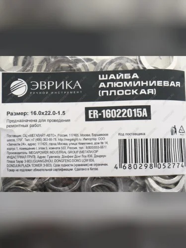 Шайба 16.0х22.0х1.5 алюминиевая (плоская) ЭВРИКА ЭВРИКА er-16022015a в Борисоглебске Воронежской области