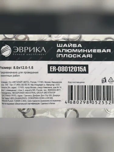 Шайба 8.0х12.0х1.5 алюминиевая (плоская) ЭВРИКА ЭВРИКА er-08012015a в Борисоглебске Воронежской области