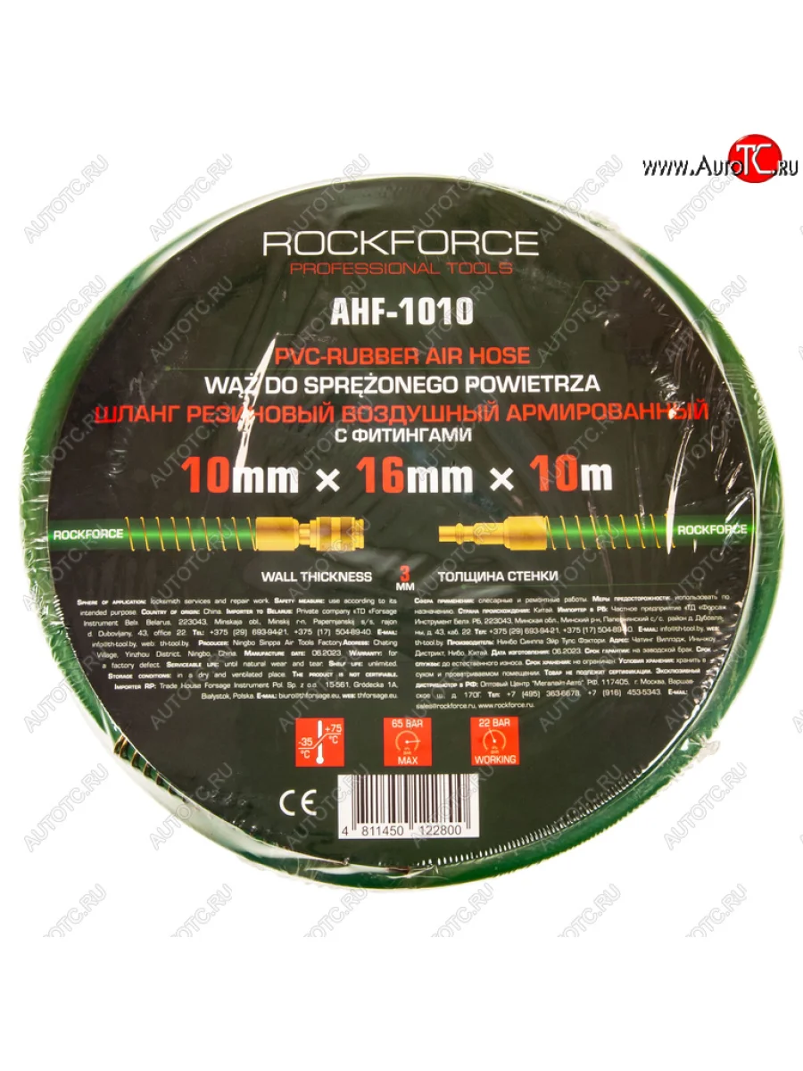 Шланг компрессора 10х16мм 10м резиновый воздушный армированный с фитингами ROCKFORCE ROCKFORCE rf-ahf-1010 в Борисоглебске Воронежской области