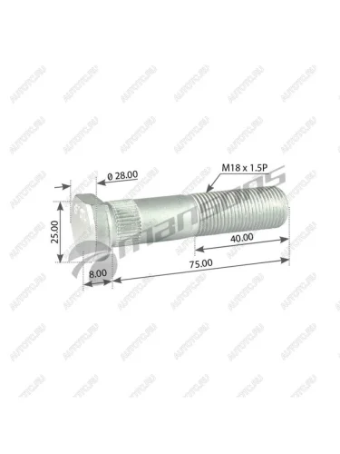 Шпилька колеса IVECO Eurocargo (M18х1.5х75) с шлицами MANSONS MANSONS 750.016 в Борисоглебске Воронежской области