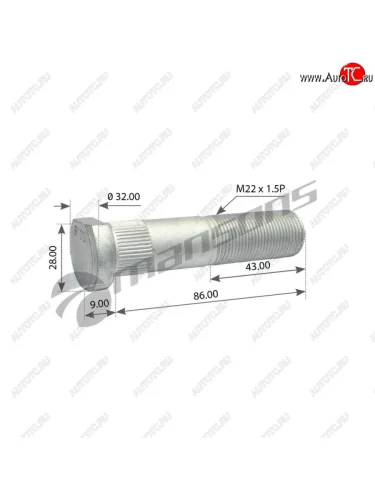 Шпилька колеса IVECO (M22х1.5х87) с шлицами MANSONS MANSONS 700.665 в Борисоглебске Воронежской области