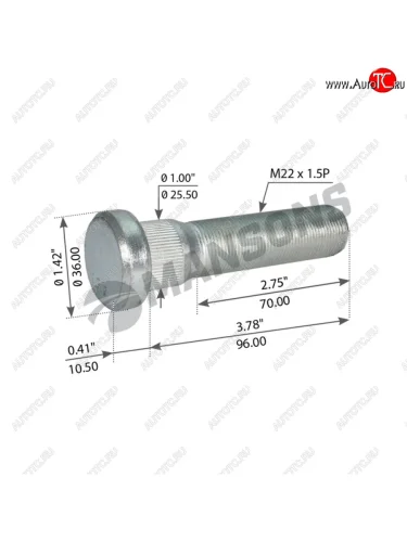 | Наименование | Шпилька колеса RENAULT VOLVO (M22х1.5х108) MANSONS MANSONS 900.117 в Борисоглебске Воронежской области |