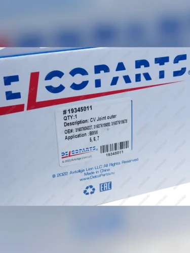 ШРУС наружный BMW 5 (F10) левыйправый DELCOPARTS DELCOPARTS 19345011 в Борисоглебске Воронежской области