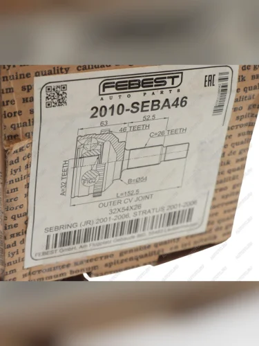 | Наименование | ШРУС наружный CHRYSLER Sebring (01-06) комплект FEBEST FEBEST 2010-seba46 в Борисоглебске Воронежской области |