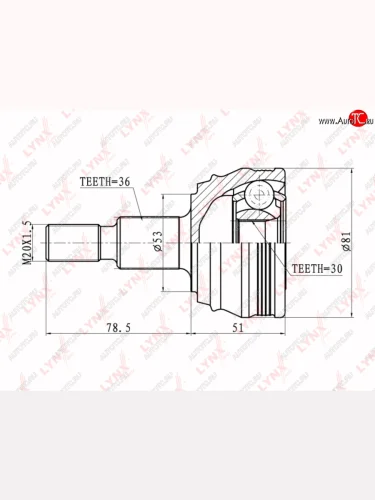 ШРУС наружный VW Bora,Golf 4,Jetta AUDI A3 SKODA Octavia (1.41.61.9) комплект LYNX LYNX co2800 в Борисоглебске Воронежской области