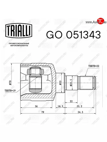 ШРУС внутренний CHEVROLET Matiz (98-05) комплект TRIALLI TRIALLI go051343 в Борисоглебске Воронежской области