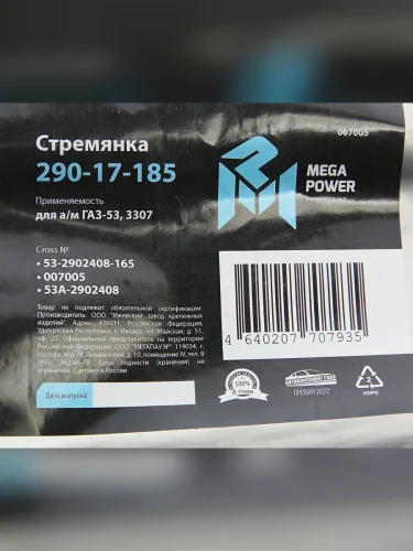 | Наименование | Стремянка ГАЗ-53 3307 рессоры передней L=165мм;М16х1.5мм кованая MEGAPOWER MEGAPOWER 290-17-185 в Борисоглебске Воронежской области |