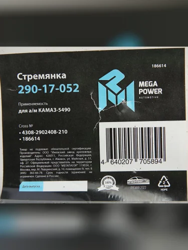 | Наименование | Стремянка КАМАЗ-5490 рессоры передней L=210мм;М24х2мм усиленная MEGAPOWER MEGAPOWER 290-17-052 в Борисоглебске Воронежской области |