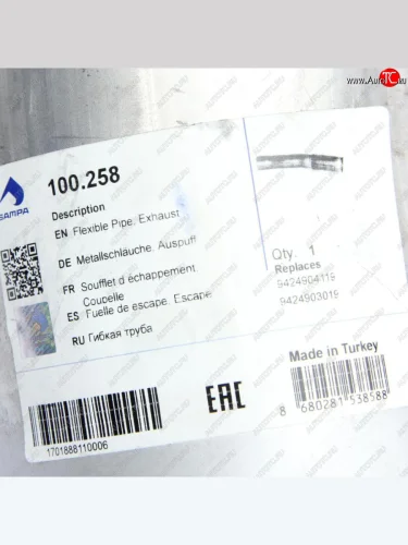 | Наименование | Труба приемная глушителя MERCEDES с гофрой SAMPA SAMPA 100.258 в Борисоглебске Воронежской области |